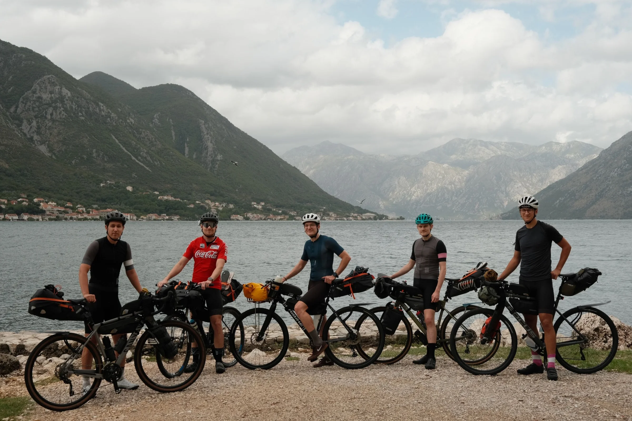 With everyone exhausted, we decided to change our plans. Instead of pushing on to Bosnia, we opted for a 20-kilometer descent down to Kotor Bay. It was a much-needed break from climbing, and by the time we reached our accommodation, we were rewarded with beautiful views of the lake.